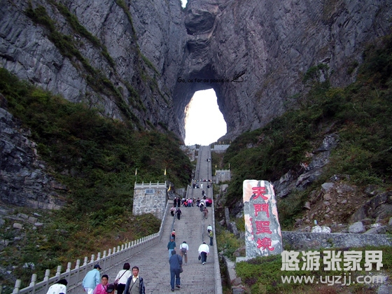 張家界天門(mén)山國(guó)家森林公園是張家界永定區(qū)海拔最高的山,距城區(qū)僅8公里,因自然奇觀天門(mén)洞而得名,以神奇著名!但是老實(shí)說(shuō),它再好玩也只是一座山,而且咱們又不可能像蜘蛛俠一樣爬山,而且前面的臺(tái)階就是主要是游玩的地方了。