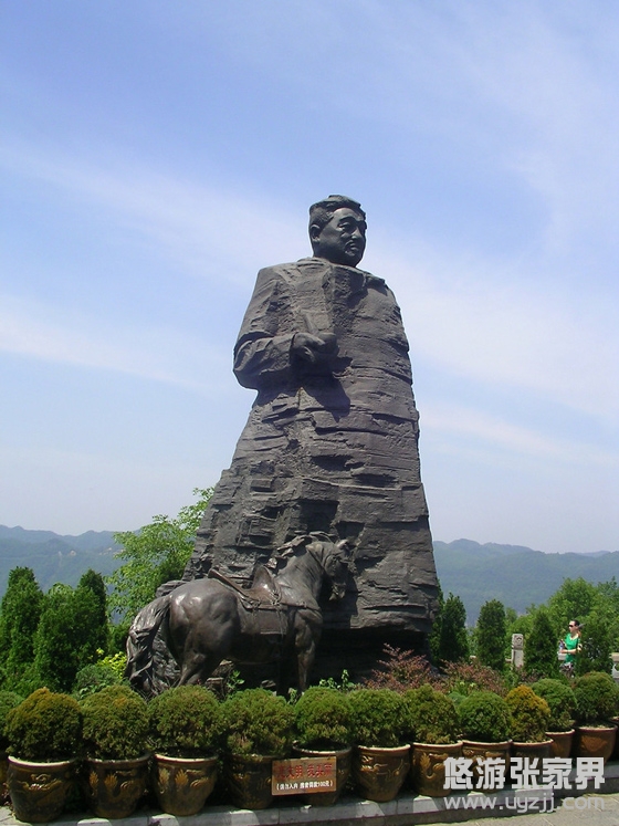 賀龍公園坐落在1200米的千層巖左側(cè)。公園內(nèi),屹立在“云青巖”上的賀龍銅像與大自然連為一體,形成獨(dú)特的藝術(shù)風(fēng)格。這是我國(guó)近百年塑造的最大的一尊銅像。