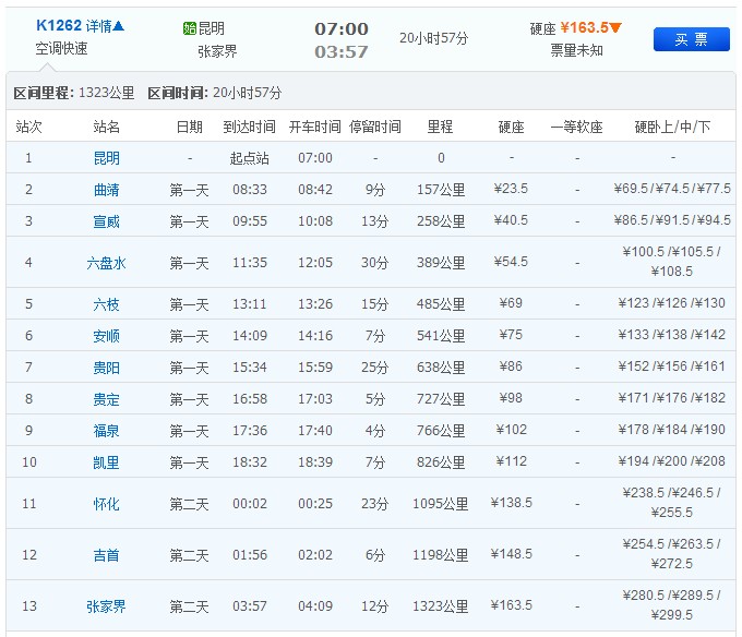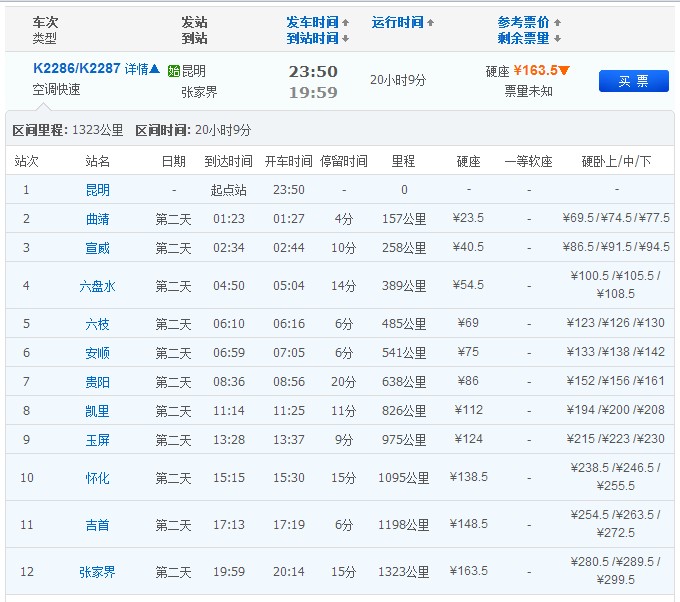 費(fèi)用:硬座 163.5 硬臥下 299.5