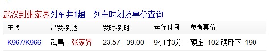 出發(fā)到達(dá)站為:武昌 - 張家界