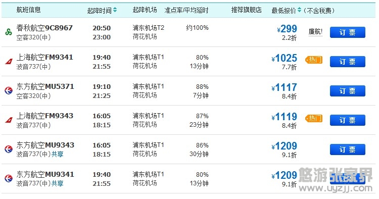 2、乘坐飛機(jī),每天從上海發(fā)到張家界的航班有三到四躺,分別有:春秋航空9C8967、上海航空FM9341、東方航空MU5371、上海航空FM9343、東方航空MU9343和東方航空MU9341,詳圖如下: