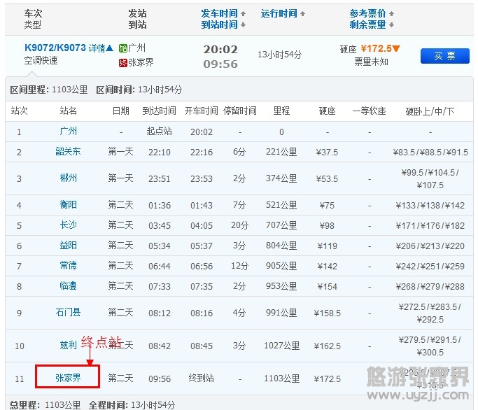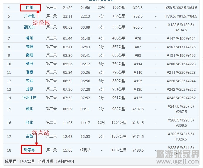 從廣州出發(fā)到張家界自由行自助游,一般都是坐火車到張家界,乘車車次有:K9072、K9068、K9064三趟,分別時刻表為: