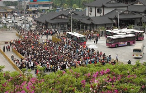 在境內(nèi)外客源市場(chǎng)全面拓展的大好形勢(shì)下,張家界武陵源區(qū)2011年旅游接待再邁新臺(tái)階。11月4日,從張家界武陵源區(qū)旅游局傳出喜訊:1至10月,武陵源全區(qū)旅游接待達(dá)到1529.8萬人次,同比增長(zhǎng)30.36%;實(shí)現(xiàn)旅游總收入突破60億元,同比增長(zhǎng)32.58%,創(chuàng)下建區(qū)以來年內(nèi)旅游總收入新高。圖為吳家峪門票站等候進(jìn)山觀光的游客。